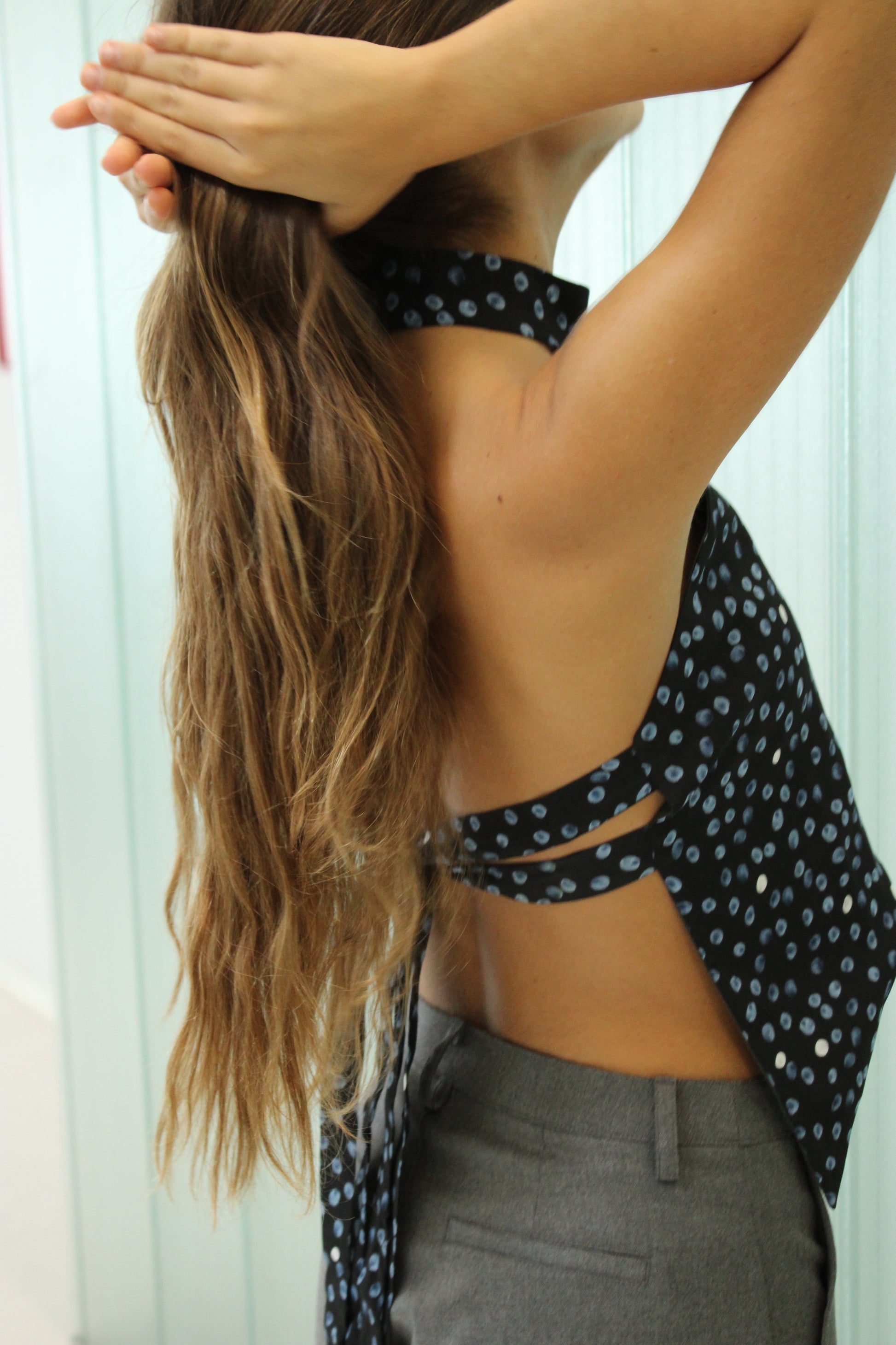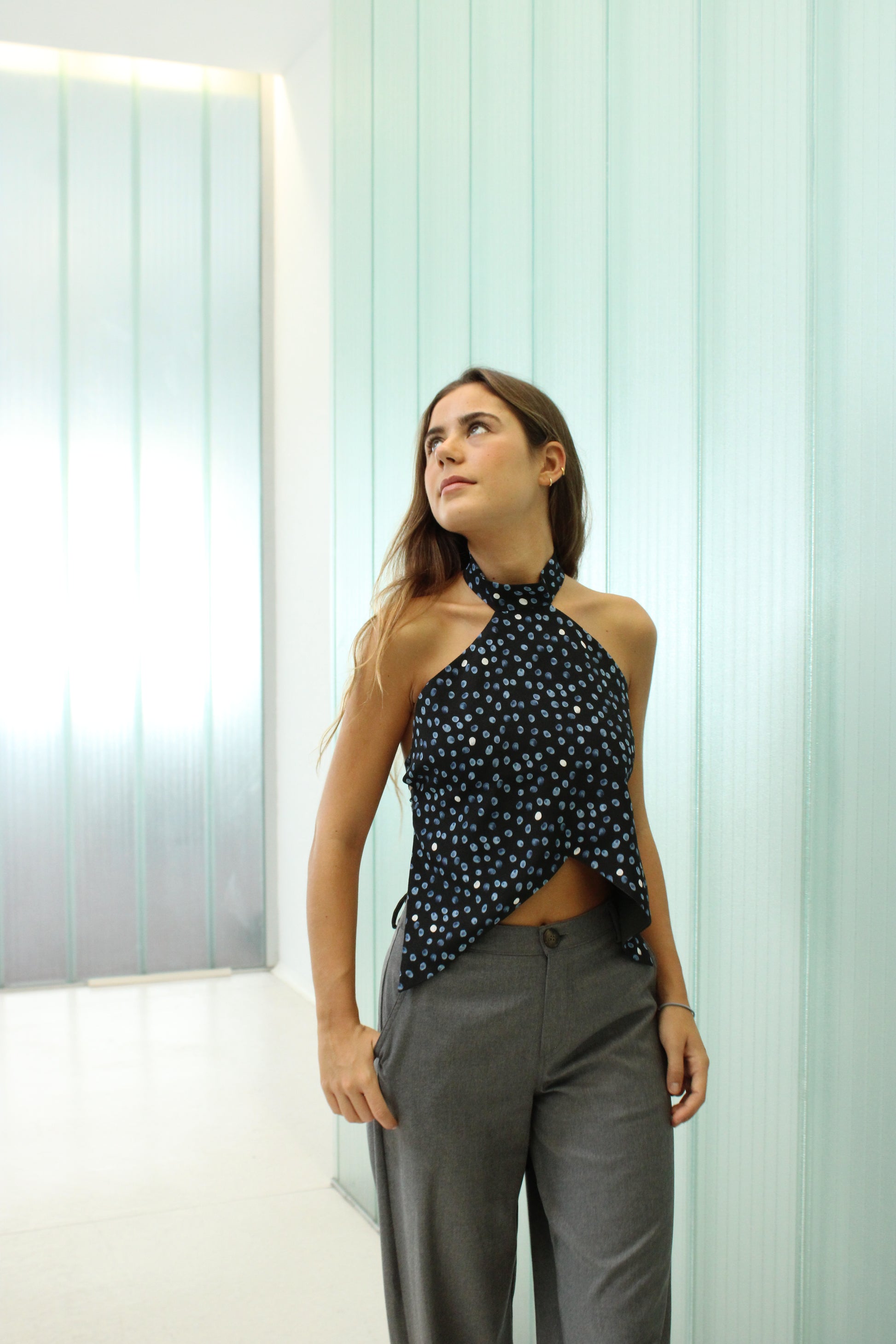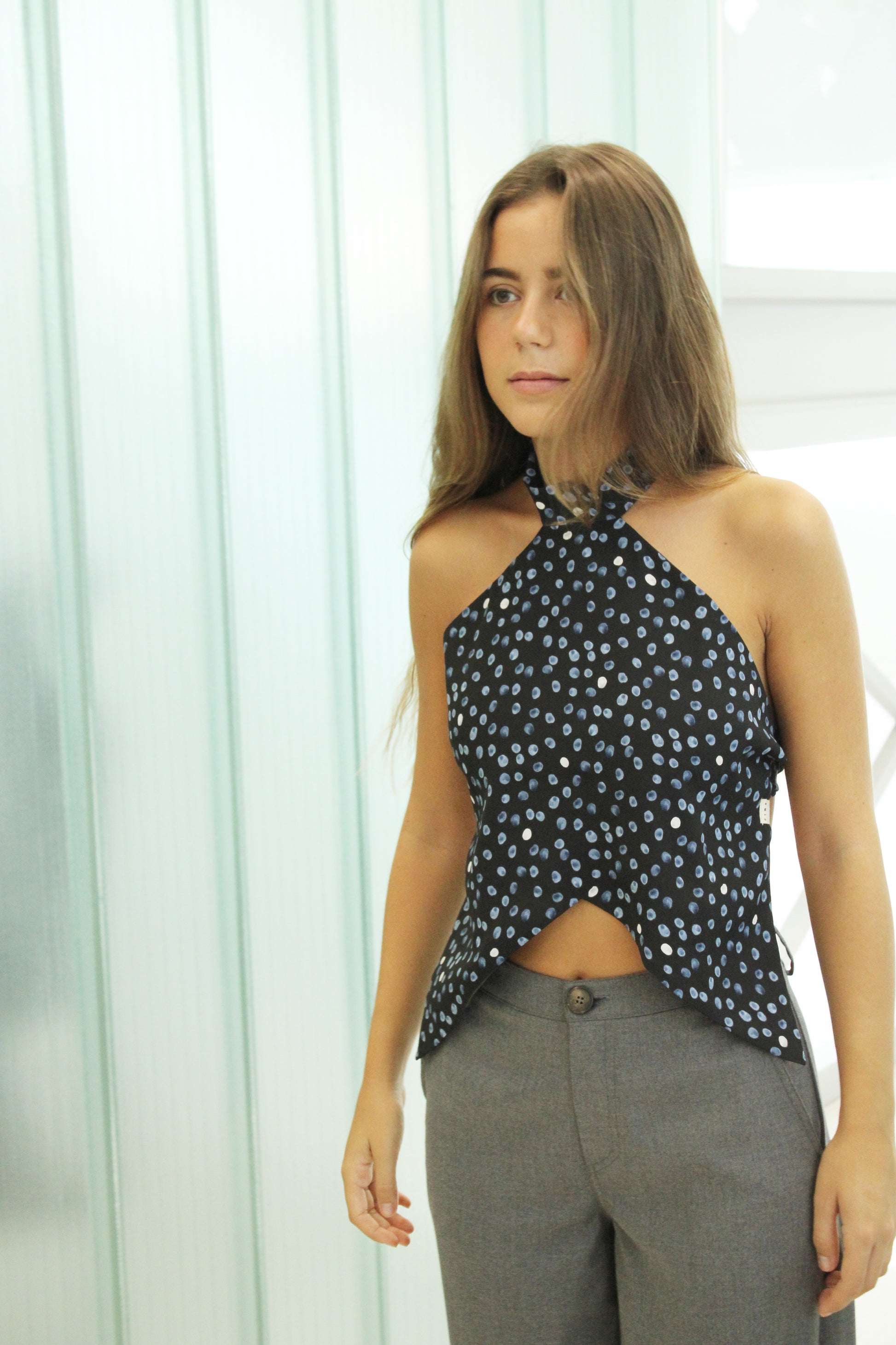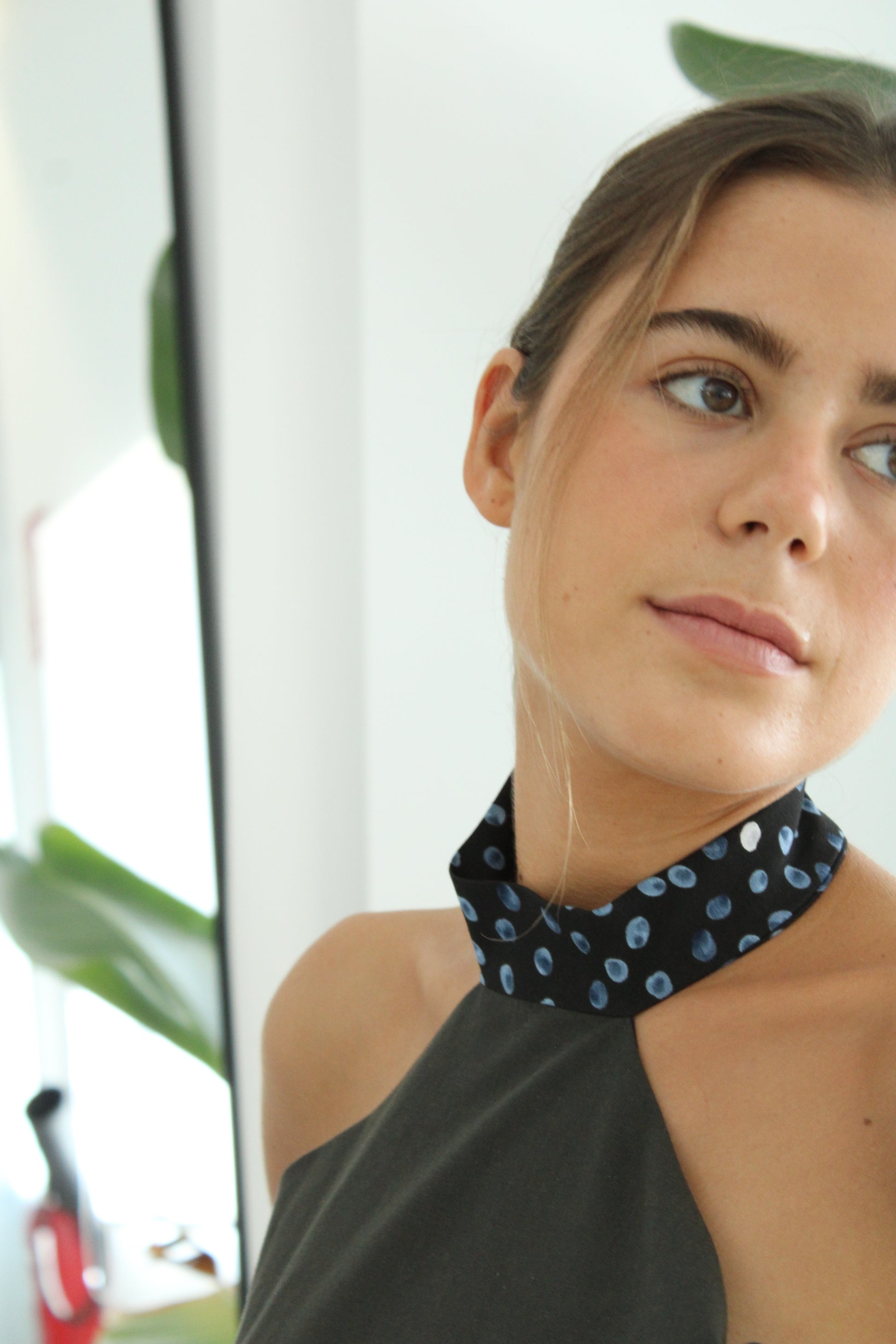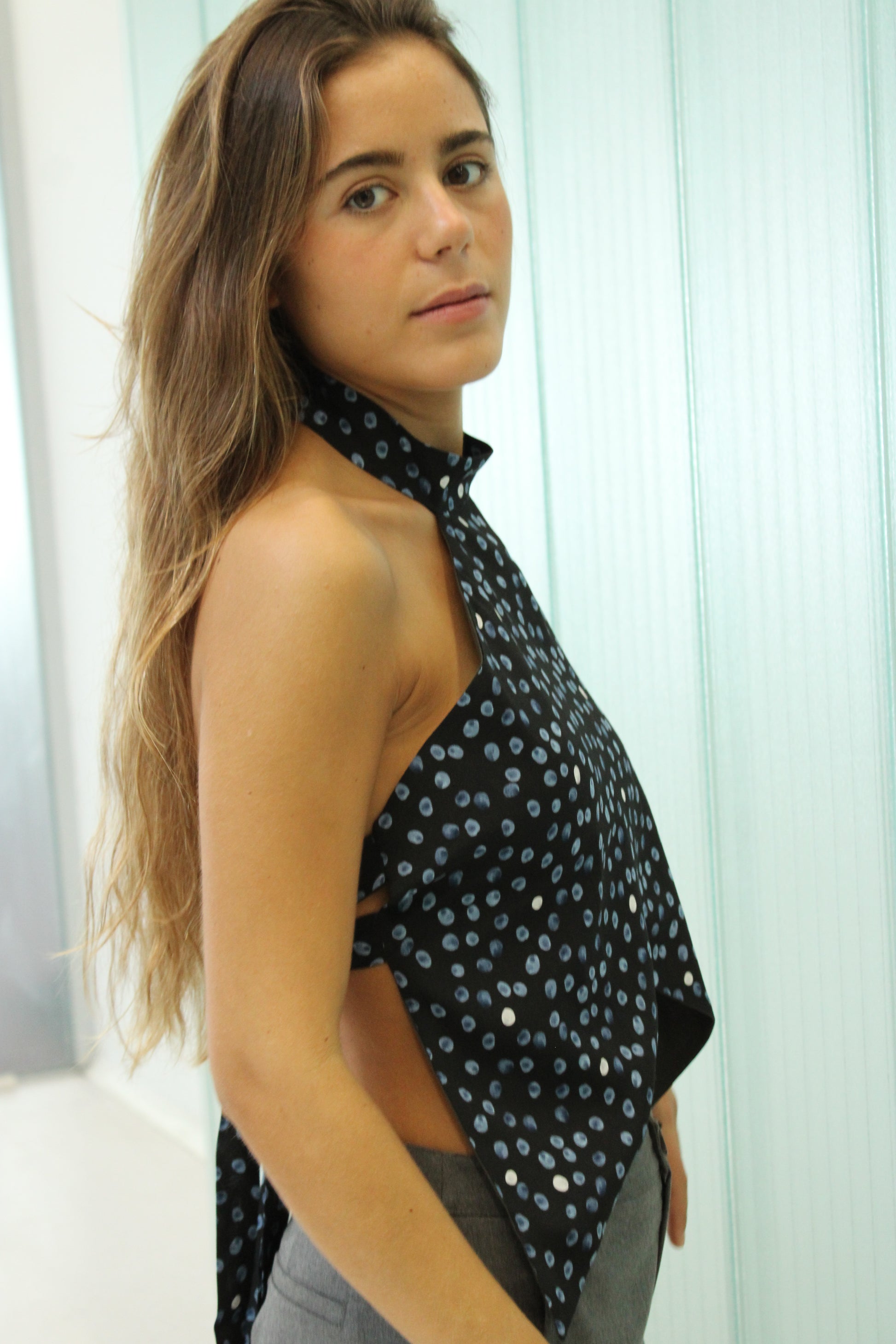 El patrón tiene 6 piezas. Tiene un largo del cuello al pico central de 40 cm y de ancho tiene un total de 1,40 m.